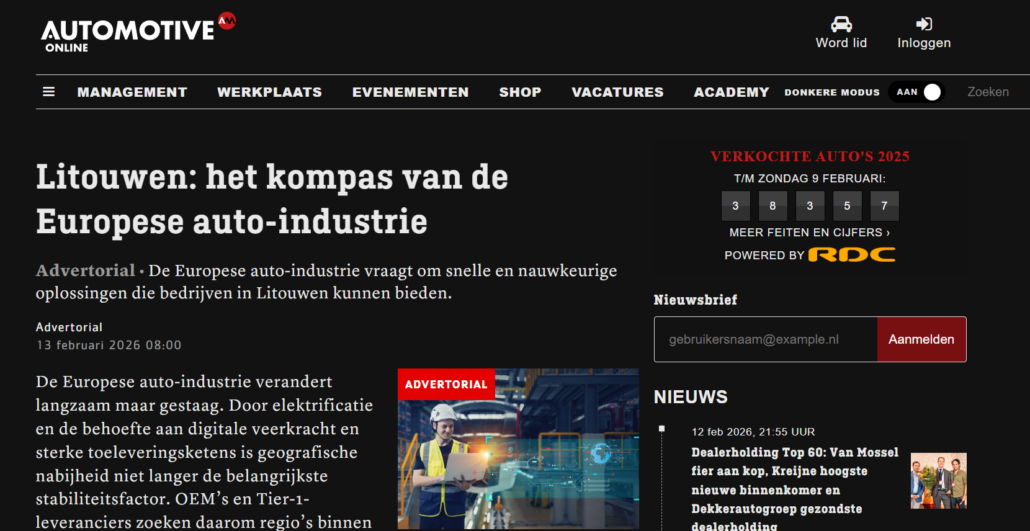 First, the Dutch automotive and mobility ecosystem is highly innovation-driven, strongly focused on electrification, smart mobility and resilient supply chains – exactly the areas where Lithuania has proven capabilities. Global players such as AUMOVIO, FORVIA HELLA, ABB and Littelfuse have already validated Lithuania as a reliable EU-based production and engineering location.