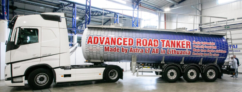 AB Astra LT presented its innovative Advanced Road Tanker at the Lithuanian Exhibition and Congress Centre LITEXPO on 27 May. The road tanker is made of stainless steel with exceptional features, designed for transporting liquid food products.